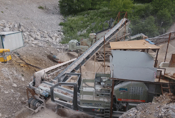 石灰石原料經(jīng)TSW1139棒條給料機(jī)均勻給料,蓖條預(yù)先篩分除土,石料經(jīng)過PE750×1060顎破破碎之后通過皮帶機(jī)先上KF1315-2反擊破移動站的3Y2160振動篩篩分再進(jìn)入PFW1315Ш三腔反擊破破碎(實(shí)現(xiàn)先篩后破,提高生產(chǎn)線效率),反擊破出料皮帶機(jī)打到顎破出料的皮帶機(jī)上,共用一根上篩皮帶機(jī),再次上振動篩進(jìn)行篩分,出來0-5-16-31.5mm三種成品料。