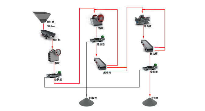 日運轉:12小時   進 料:經過處理后粒徑小于400mm的鋼渣   成 品:0-5mm