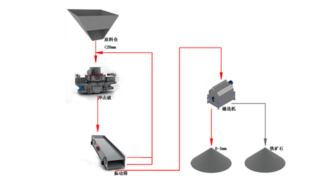該客戶生產線位于河北某鐵礦生產線附近,用于鐵礦石干拋料破碎加工。成品主要用來制砂,磁選獲得鐵礦石銷售至選礦廠。