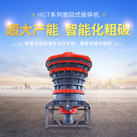 HGT旋回式破碎機主要由橫梁部、上中下機架部、動錐部、偏心套部、傳動部和液壓缸部等組成,由電動機帶動水平軸旋轉(zhuǎn),水平軸通過齒輪帶動偏心套旋轉(zhuǎn),再由偏心套帶動動錐部做圓周擺動,從而實現(xiàn)連續(xù)的擠壓破碎石塊。 通過調(diào)整處于動錐底部的液壓缸可以使動錐上下運動從而方便的調(diào)整排礦口的大小,方便地調(diào)整產(chǎn)品粒度大小。同時液壓缸也提供過鐵保護(hù)功能,當(dāng)有不能破碎的物體(如鐵塊)進(jìn)入破碎腔時,液壓缸能自動使動錐下落,從而釋放鐵塊,繼續(xù)破碎,保護(hù)破碎機。