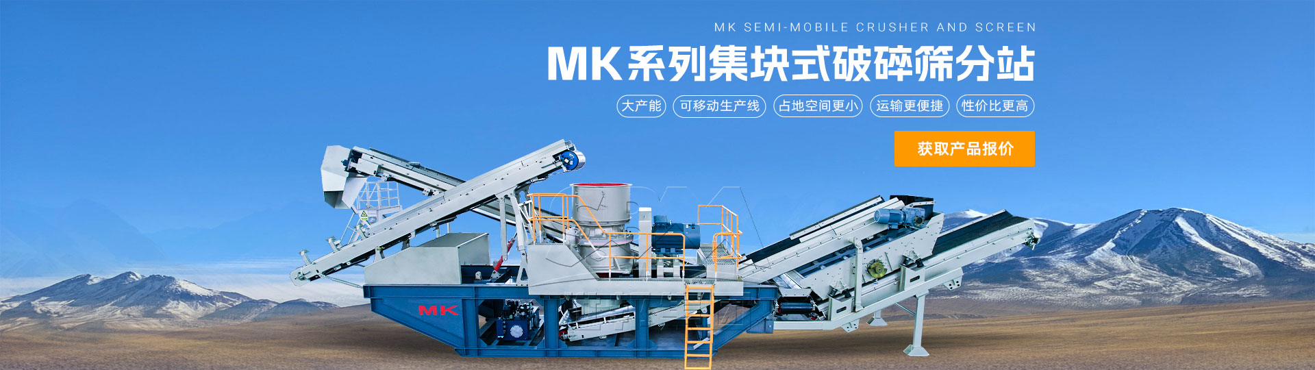 MK系列集塊式破碎篩分站是世邦集團根據市場需求而推出的一種新型雪橇底座式的集成模塊化的生產線。與固定式砂石線相比,它采用免基礎安裝設計,建設周期短,上料高度低,后期可遷移;與輪胎或履帶式移動站相比,它單條生產線產能可達800噸/時。得益于高度集成模塊化的設計,MK系列集塊式破碎篩分站不僅外形尺寸小、吊裝運輸方便,還可實現現場快速安裝、快速投產,非常適合場地空間有限、工期緊張的破碎篩分項目。