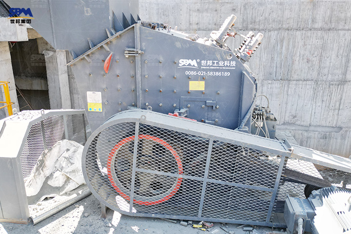當物料進入板錘作用區時,受到板錘的高速沖擊而破碎,并被拋向安裝在轉子上方的反擊裝置上再次破碎。然后又從反擊破襯板上彈回到板錘作用區重新破碎。此過程重復進行,直到物料被破碎至所需粒度,由機器下部排出為止。調整反擊架與轉子架之間的間隙可達到改變物料粒度和物料形狀的目的。