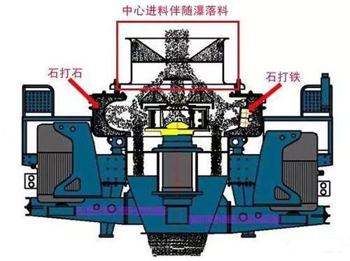 VSI制砂機除了有兩種進料方式:完全中心進料和中心進料伴隨瀑落進料,還有兩種破碎方式:“石打石”和“石打鐵”。“石打石”適用于整形,“石打鐵”適用于制砂。