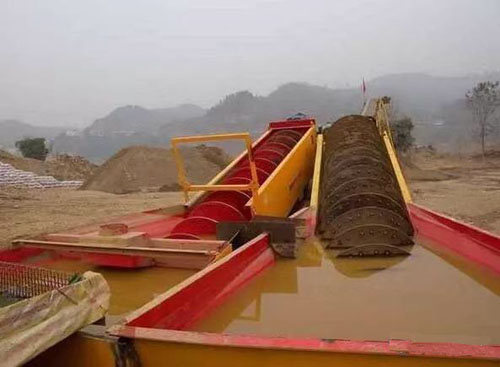 洗砂機分為輪斗洗砂機和螺旋洗砂機。輪斗洗砂機廣泛適用于礦山、建材、化工、交通、混凝土攪拌站等領域中對物料的洗選,洗砂過程是圓運動。螺旋洗砂設備則是利用螺旋葉片的推進作用清洗泥土,相比輪式洗砂機,螺旋洗砂機洗凈度更高,并且對石料的清洗效果更好。同樣的道理,利用沙、泥、水的不同比重,將砂子提取出來,水和泥順著溜槽流走。