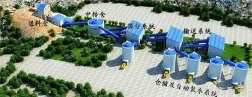 包括粗破喂料倉、中細破及制砂緩沖倉、產品儲存庫、石粉儲存庫。