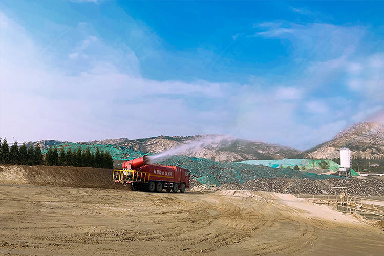 北苑優化:生產全過程均進行降塵處理:園區內揚塵噪聲實時監控;霧炮車全線循環噴霧降塵;臨時料堆均用防塵布覆蓋;生產線從進料到出料全程裝配降塵裝置;成品骨料堆放區也配置全方位防塵霧炮。