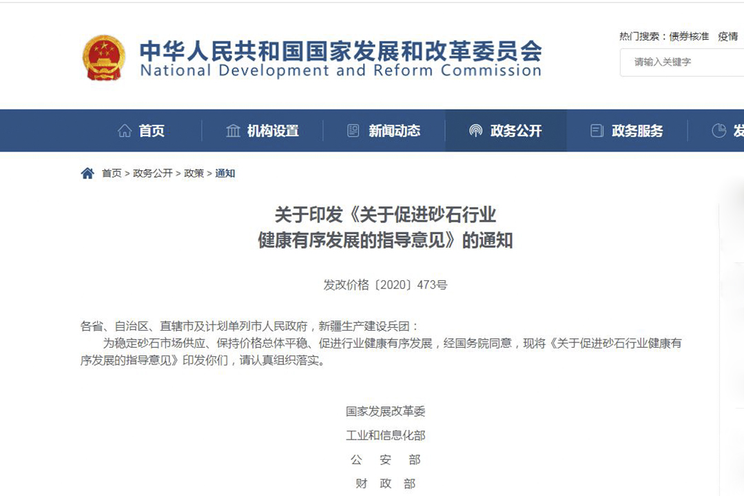 今年3月底,距離上個意見發布僅僅不到半年,國家發改委等十五部門和單位又聯合印發《關于促進砂石行業健康有序發展的指導意見》。《意見》中再次強調,推動行業高質量發展需要大力發展和推廣應用機制砂石,并就開發布局、手續辦理、成品運輸等給出基本解決規劃。