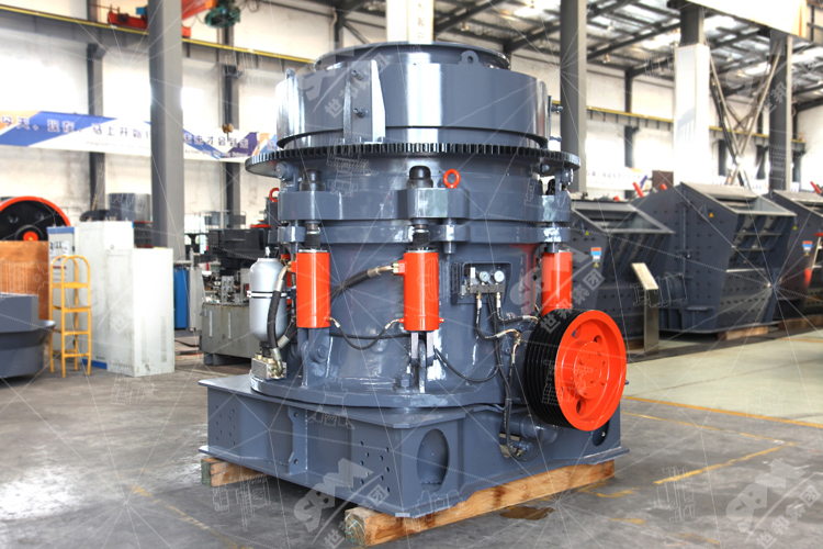 石料由振動給料機均勻地送到顎式破碎機進行粗破,粗破后的物料由膠帶輸送機送入圓錐式破碎機進行二級破碎,細碎后的物料被輸送到振動篩進行篩分,達到成品粒度要求的物料被送入洗砂機清洗,清洗后由成品輸送帶輸出即為成品;未達到成品粒度要求的物料從振動篩返回圓錐破中重新加工,形成閉路多次循環。