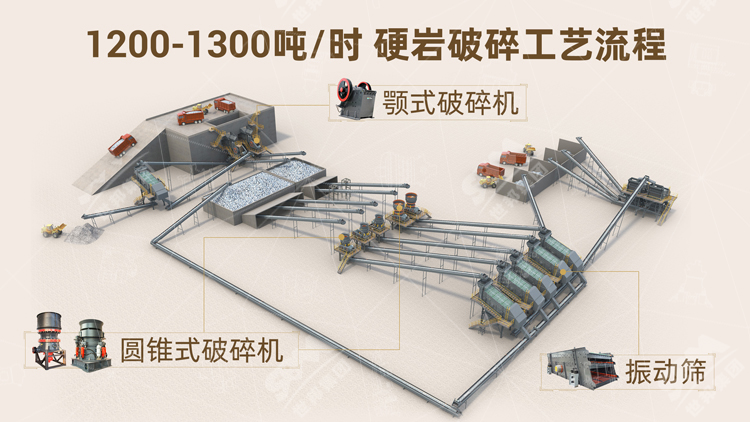1、1200-1300噸/時硬巖破碎工藝流程