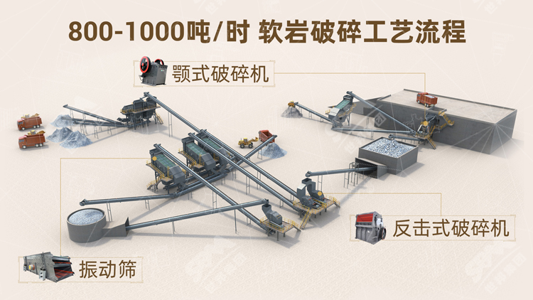 2、800-1000噸/時軟巖破碎工藝流程