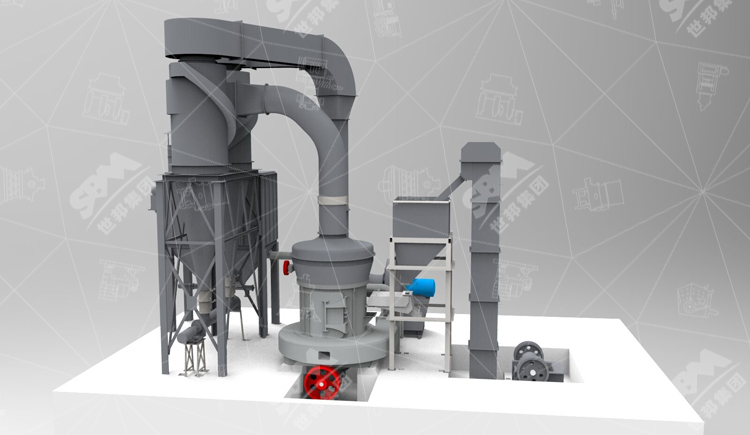 破碎后的石灰石經過提升機進入料倉,再由振動給料機送到磨粉機內,經過磨粉機研磨后的成品達標的排出磨機,不達標的返回至磨粉機。
