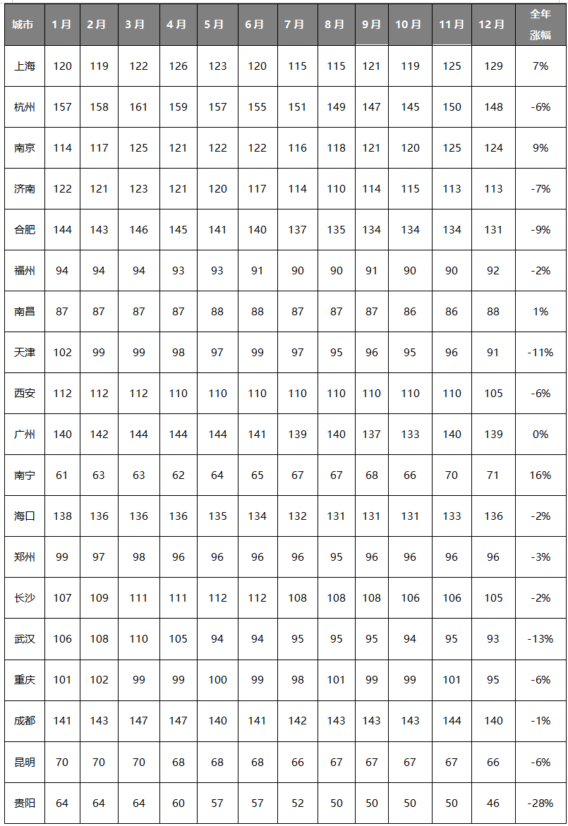 2023年中國重點(diǎn)城市砂石行情月度變化表(元/噸)