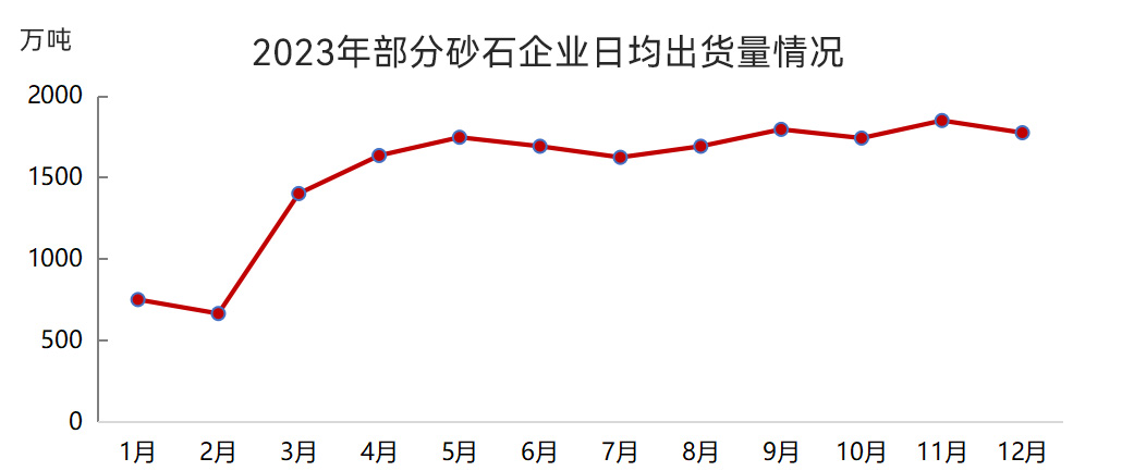 根據(jù)對重點(diǎn)砂石企業(yè)監(jiān)測顯示,1月、2月,因?yàn)榇汗?jié)假期,砂石礦山企業(yè)停工等因素的影響,重點(diǎn)砂石企業(yè)日均出貨量低位運(yùn)行。