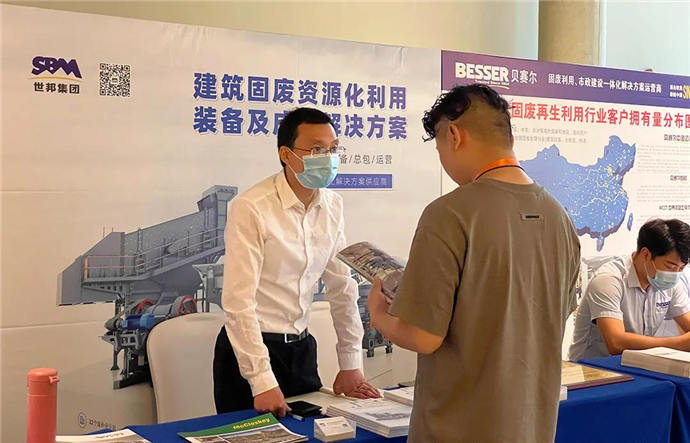 世邦集團作為建筑固廢資源化利用解決方案提供者,在本次大會上展示了建筑固廢再生骨料生產新技術和裝備,吸引了眾多與會代表前來咨詢、交流。