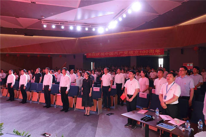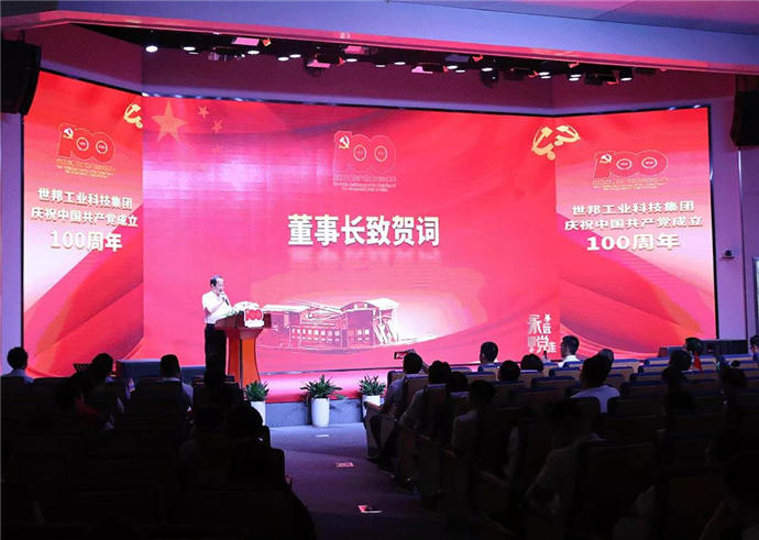 世邦集團隆重召開慶祝中國共產黨成立100周年大會。董事長、相關領導、全體黨員及各部門職工代表參加。