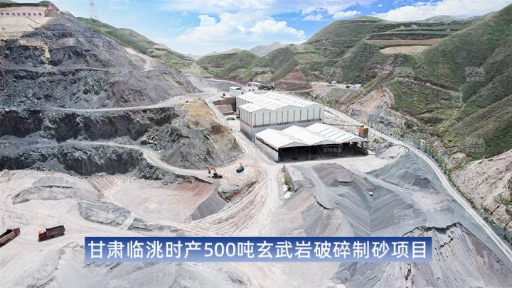 甘肅臨洮,礦區巖石以玄武巖為主,經檢測,石料壓碎值達到13%,單軸抗壓強度為95MPa,適用于高強、高性能混凝土和道路、隧道、橋梁等建筑工程用材。基于原礦石特性和成品高品質骨料需求,項目對破碎工藝方案和破碎設備提出了嚴格要求。