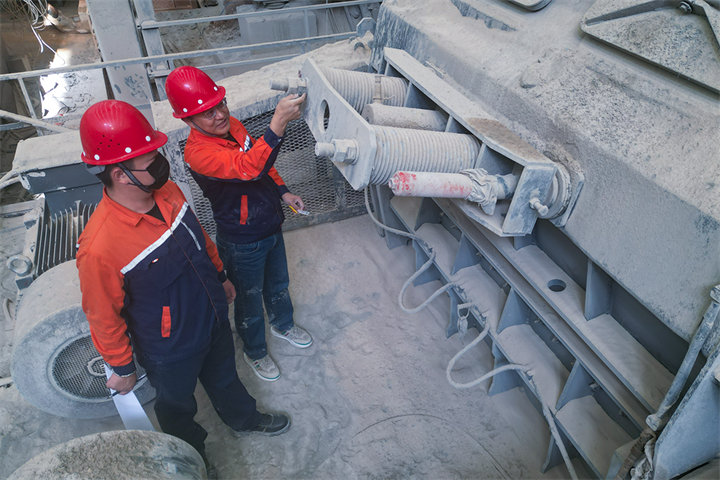 該項目采用世邦F5X給料機、C6X顎式破碎機、HPT多缸液壓圓錐破、VSI6X制砂機、S5X振動篩等系列破碎制砂篩分裝備,回訪中售后人員與客戶詳細溝通了生產線設備使用情況,對主機性能、易損件使用情況等進行了詳細的檢測。