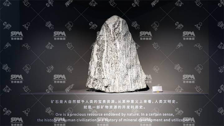 礦博館是世邦集團自主策劃、自主設計、自主搜集展標、自主施工的項目,共分為三個大廳:礦石起源廳、巖石礦物廳、礦石加工應用廳,陳列了近4000件來自世界各地的礦石及諸多客戶現場帶回的成品砂石骨料等。