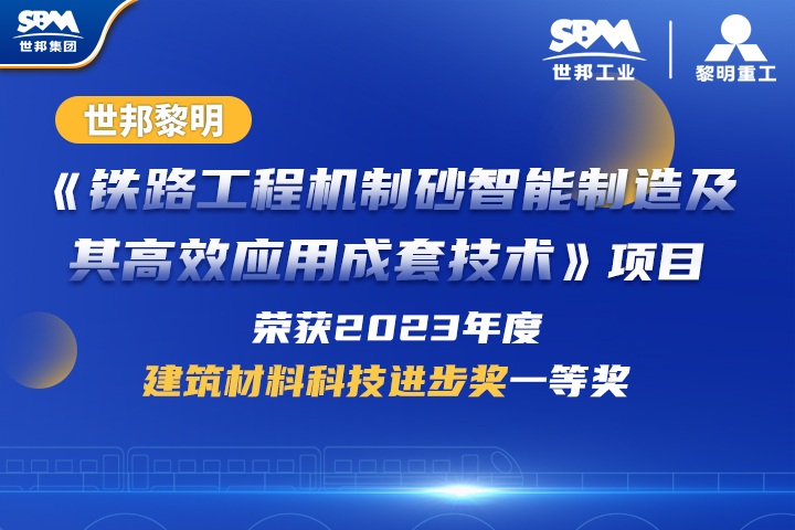 世邦黎明《鐵路工程機制砂智能制造及其高效應用成套技術》項目 榮獲2023年度建筑材料科技進步獎一等獎