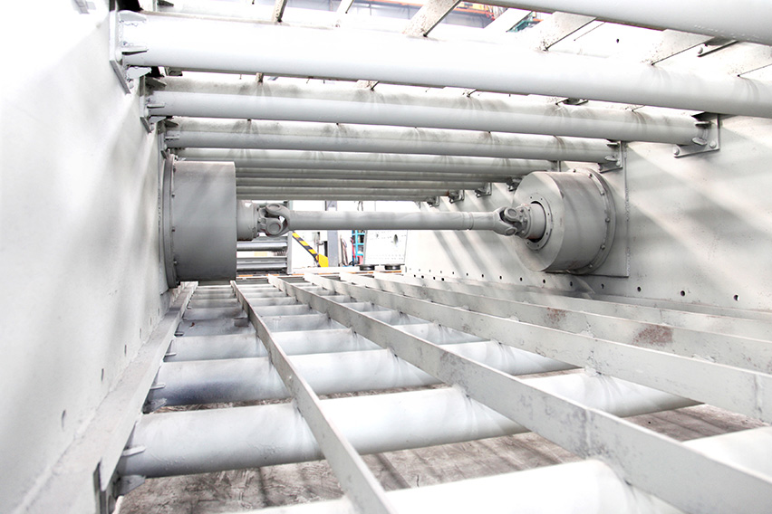 YKN圓振篩的設(shè)計(jì)中,我們采用了有限元分析技術(shù)對(duì)篩箱進(jìn)行優(yōu)化計(jì)算,是篩箱整體和側(cè)板受力狀況更加合理;同時(shí),在篩箱側(cè)板的加工上,我們利用大型機(jī)床直接折彎處理,有效避免焊接等造成的開裂風(fēng)險(xiǎn)。