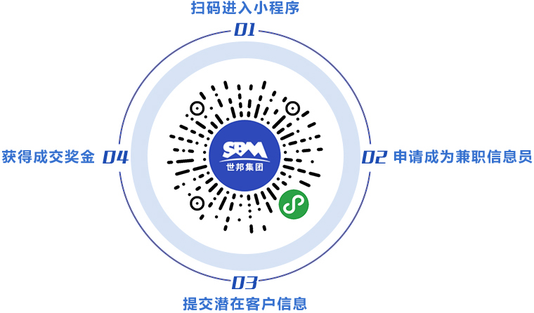 關注世邦集團官方微信公眾號,掃描下方小程序二維碼,成為兼職信息員,提交潛在客戶信息,豐厚傭金輕輕松松帶回家!