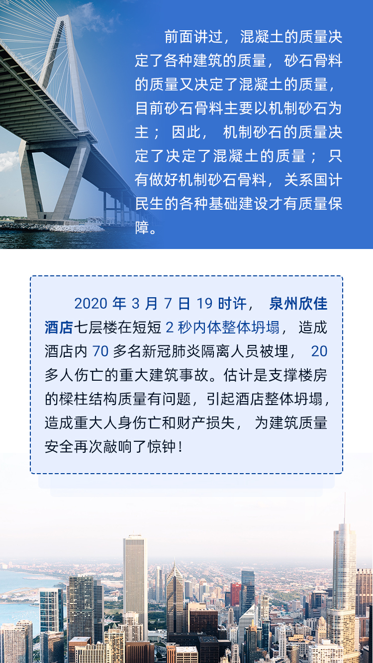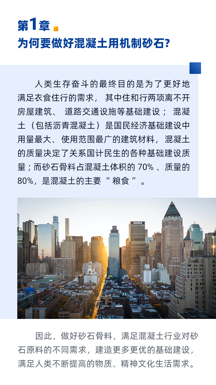 砂石骨料占混凝土體積的70% 、質量的80%,做好混凝土機制砂石骨料不僅能夠滿足高標準的混凝土生產需求、提高混凝土產品質量性能,降低混凝土塌落度損失,泵送壓力損失小,還可以有效節約混凝土生產成本,提高商混企業經濟利潤……